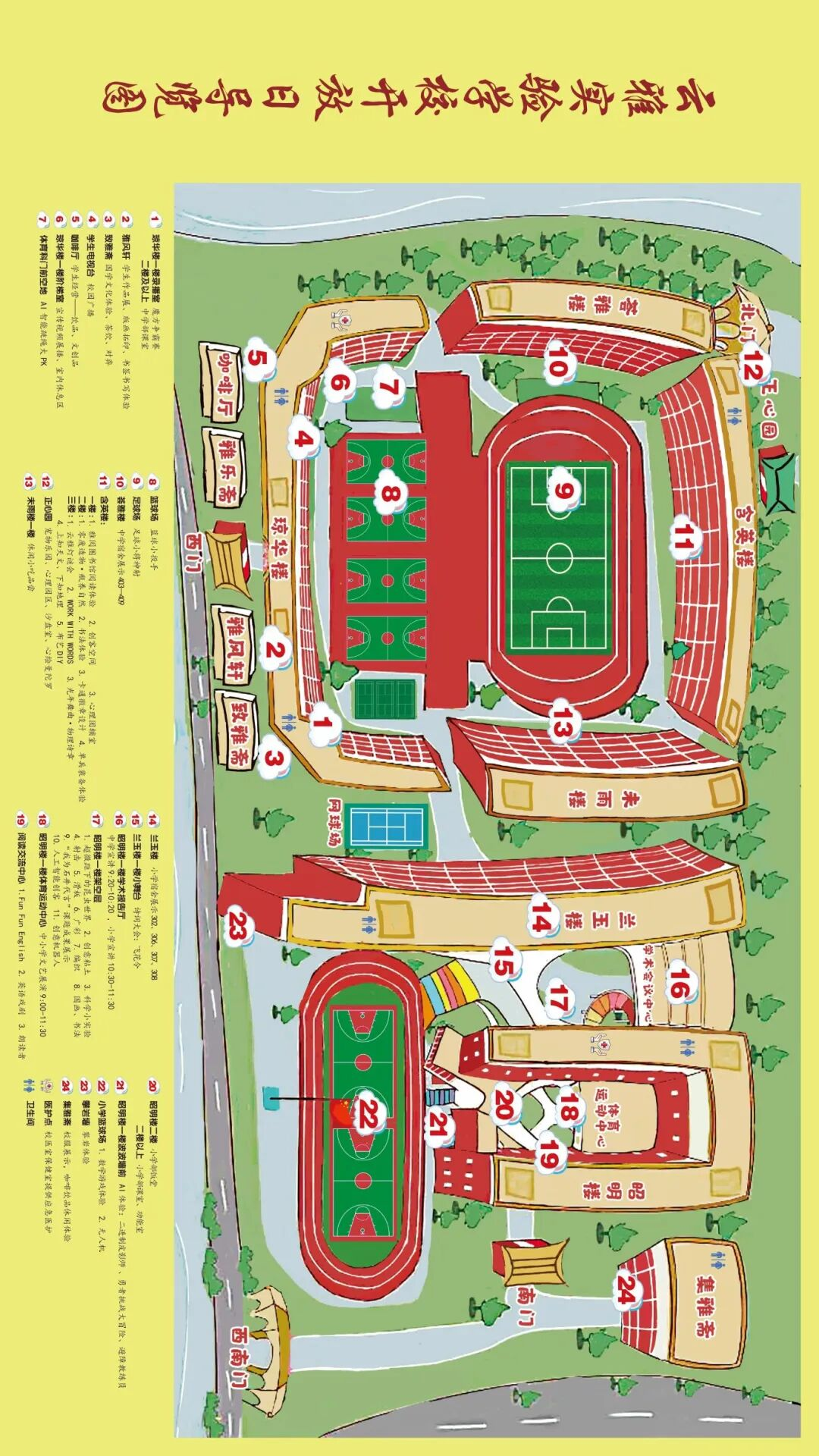 功能场馆:设有历史室、地理室、物理实验室、化学实验室、生物实验室、音乐室、美术室、舞蹈室、图书馆、生物园等,为学生提供多样化的学习和实践空间。