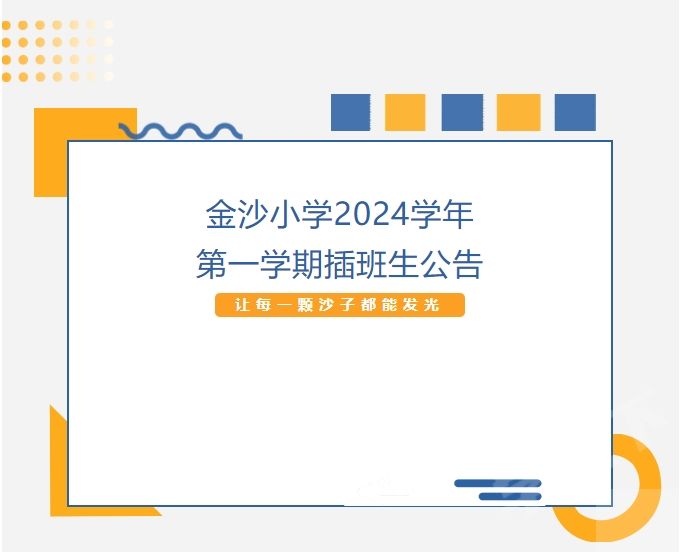 金沙小学2024学年第一学期插班生公告