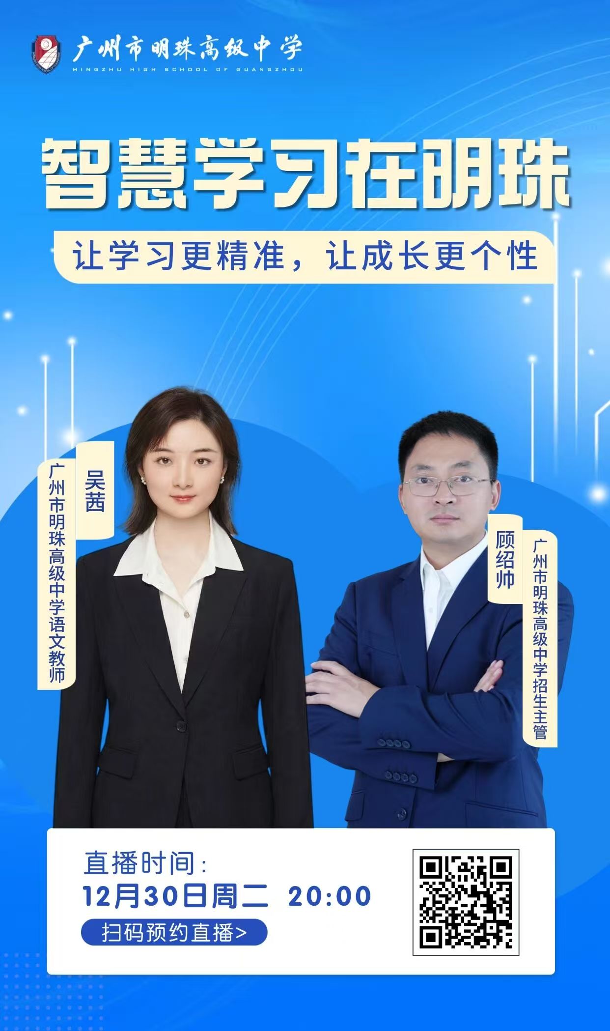 直播预告|智慧学习专场:顾绍帅主管×吴茜老师,揭秘明珠高中如何实现“精准学、个性长”